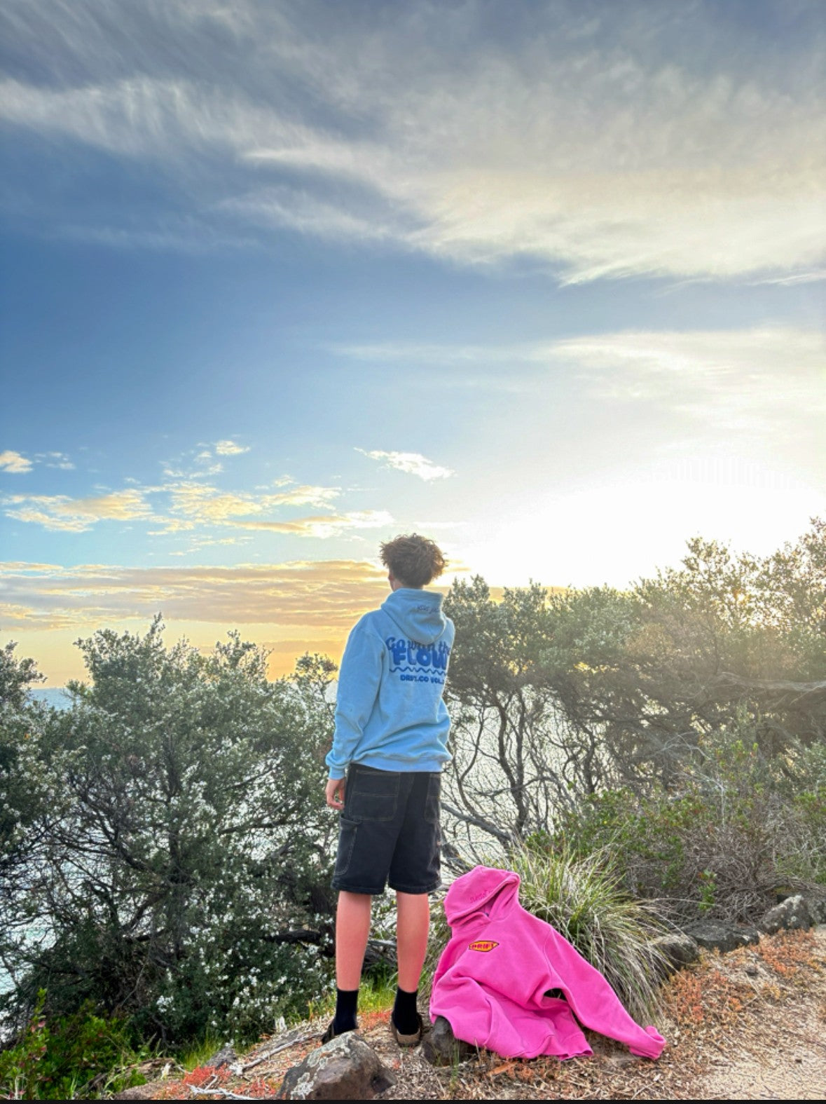The Sunset Pink and Ocean Blue hoodies are made for summer nights, beach runs, and those days that just feel right.